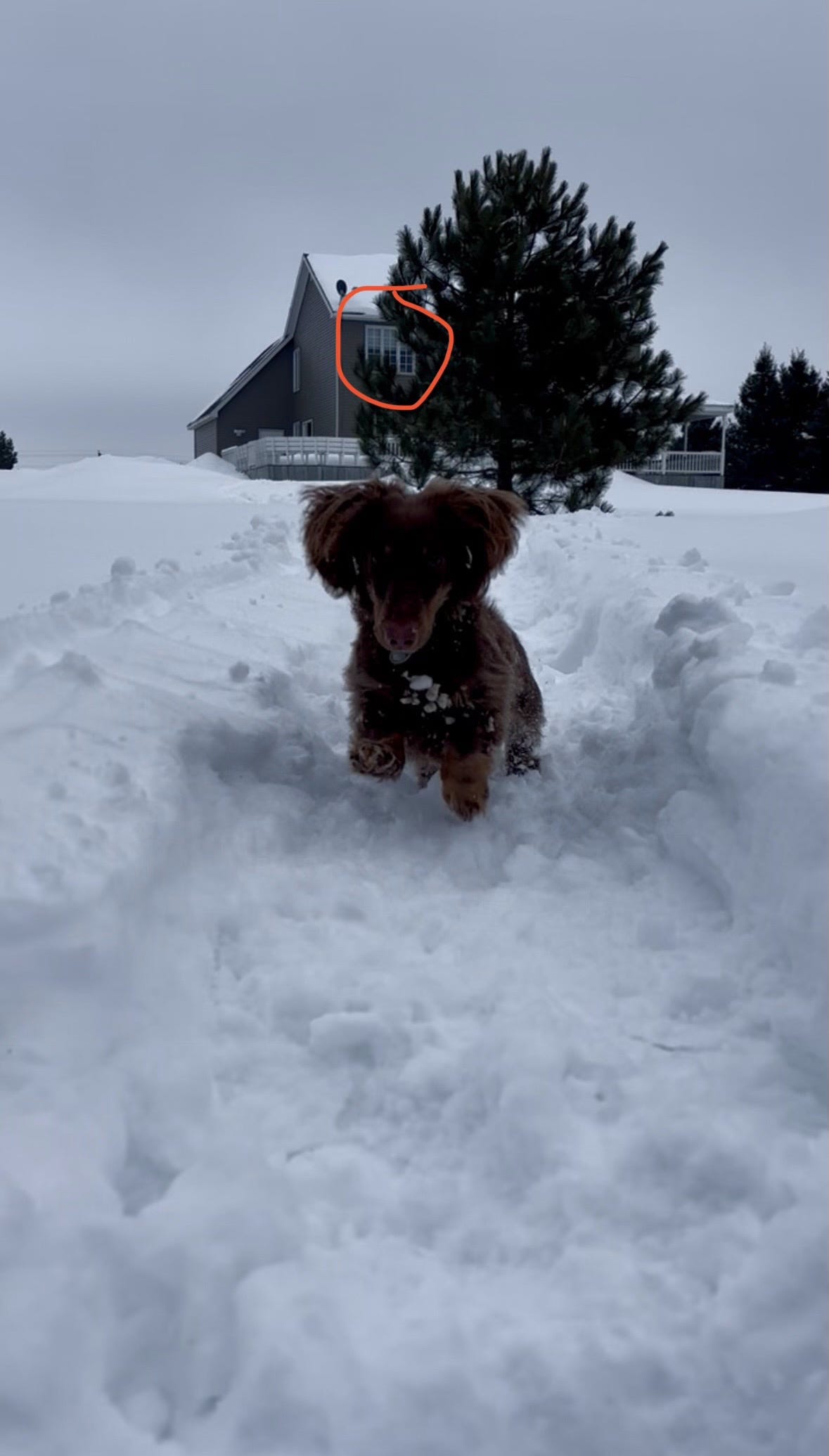 Something a little different this month: the view OF my writing window, care of Moose. The snow has been so deep, I had to make him some roads through the yard with my snowshoes. Now he can get to his favorite tree and to the pond.