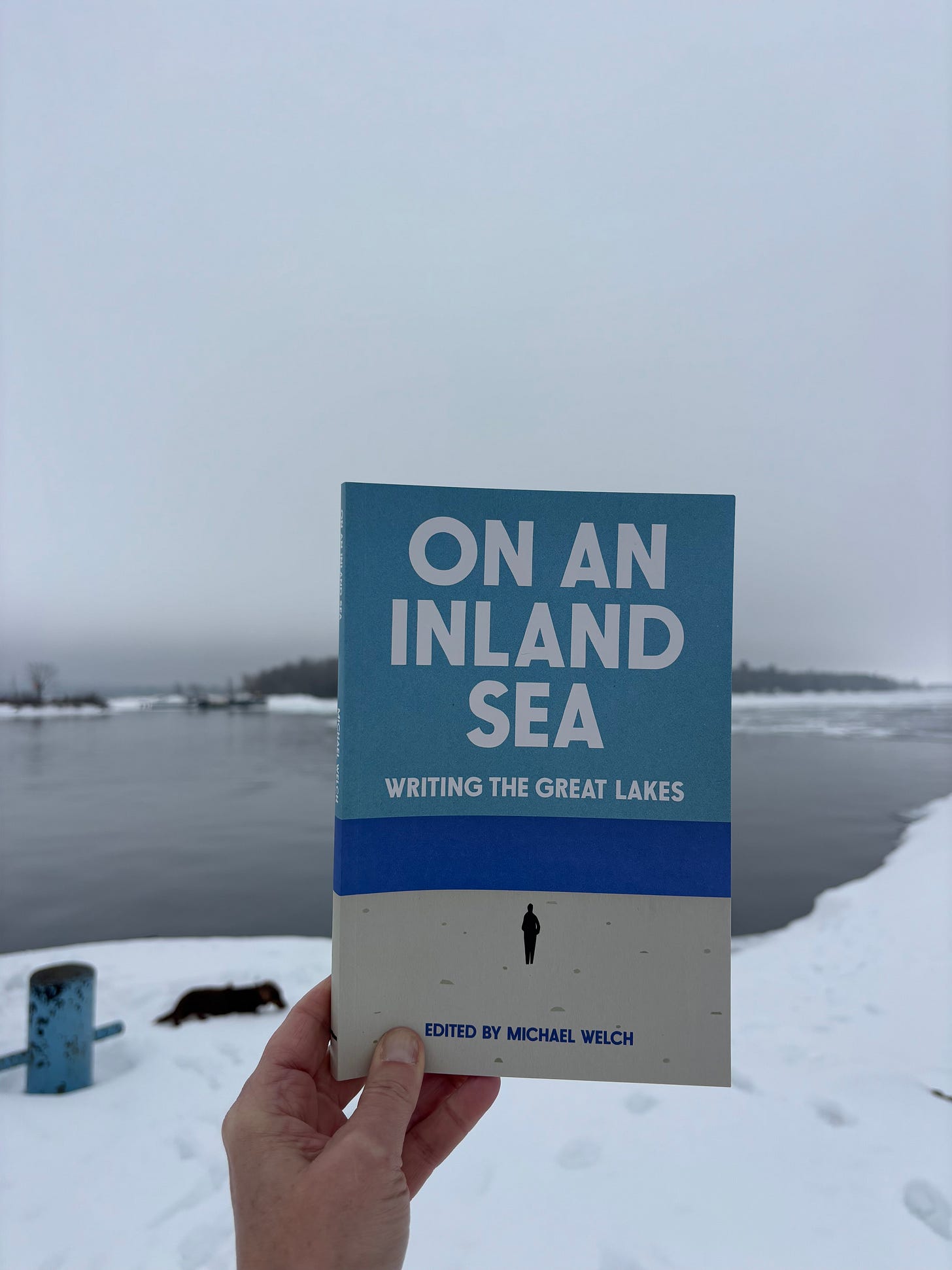 An essay in an anthology: A year ago, I wrote an essay about what it’s like to live in the UP in the midst of climate change and submitted it to a call for papers by Mike Welch, the editor of the Chicago Review of Books. He accepted it for his anthology, On an Inland Sea: Writing the Great Lakes, which is coming from Belt Publishing on March 10, 2026. It’s a beautiful anthology, filled with such wide expression for the place I call home. I received my contributors copy last week and drove it around to show it some of the places I wrote about.